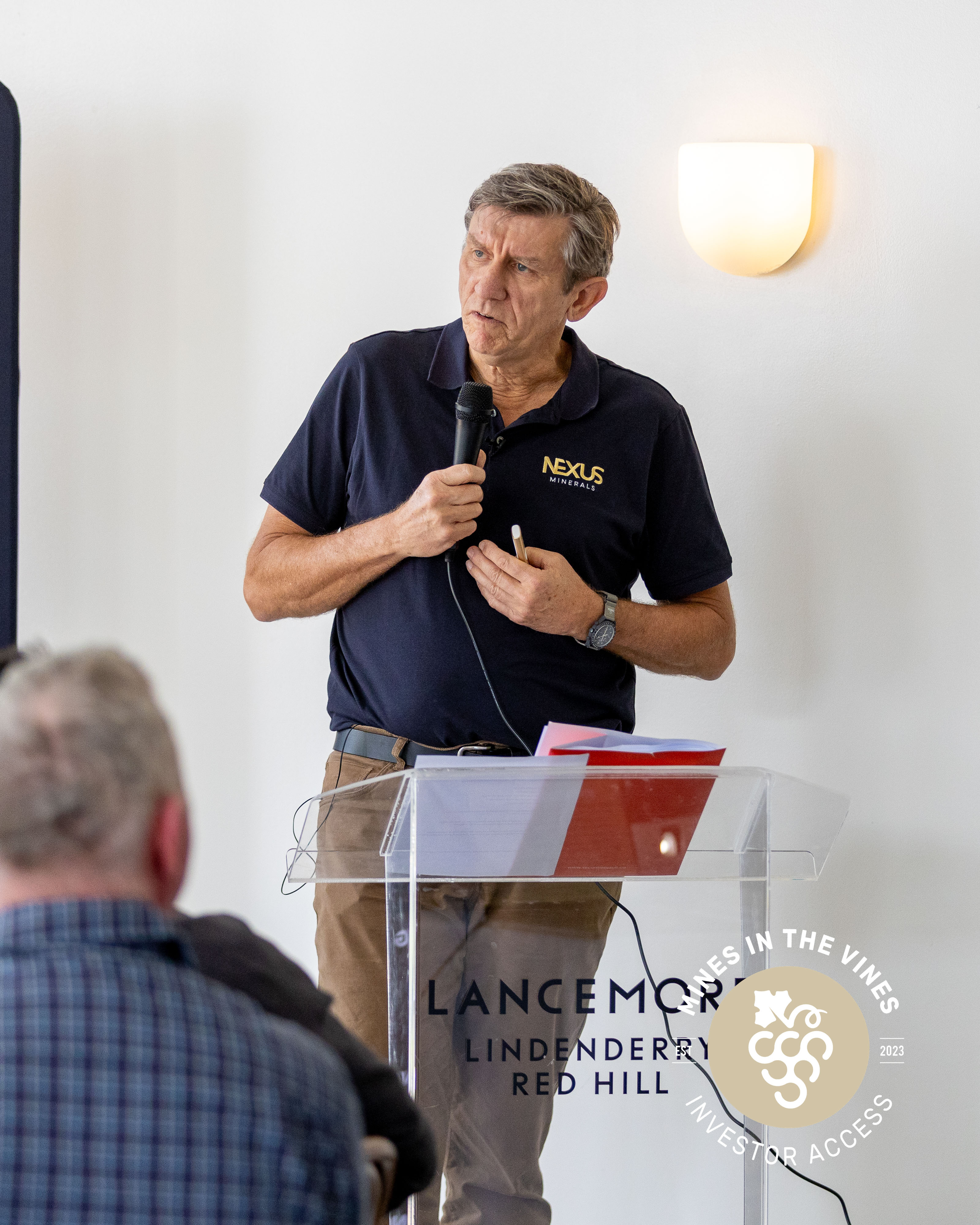 The lunch and wine tasting following allowed for plenty of Q&A in a congenial environment. A valuable and worthwhile exercise in the marketing of the Nexus Minerals story. I would highly recommend the Mines in the Vines format."